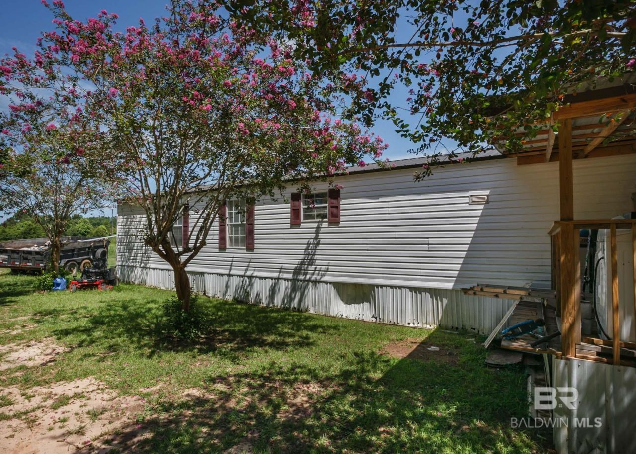 Looking for the perfect countryside paradise? Look no further. This property features 1999 Singlewide Trailer with 1216 sq ft, featuring 2 bedrooms, 2 baths, and recent upgrades including a new roof (2019) and HVAC (2021). Situated on a spacious 3.9-acre parcel with Baldwin County zoning and no HOA. This property is un-zoned. There are no restrictions for the type of use. There is a two-dwelling limit including homes, mobile homes, and RV's. Utilities provided by EMC, Well Water, and BCSS Sewer. Multiple prefab buildings on property offer ample storage. Don't miss out on this fantastic opportunity to own 3.9 acres of serene Alabama countryside. Buyer to verify all information during due diligence.