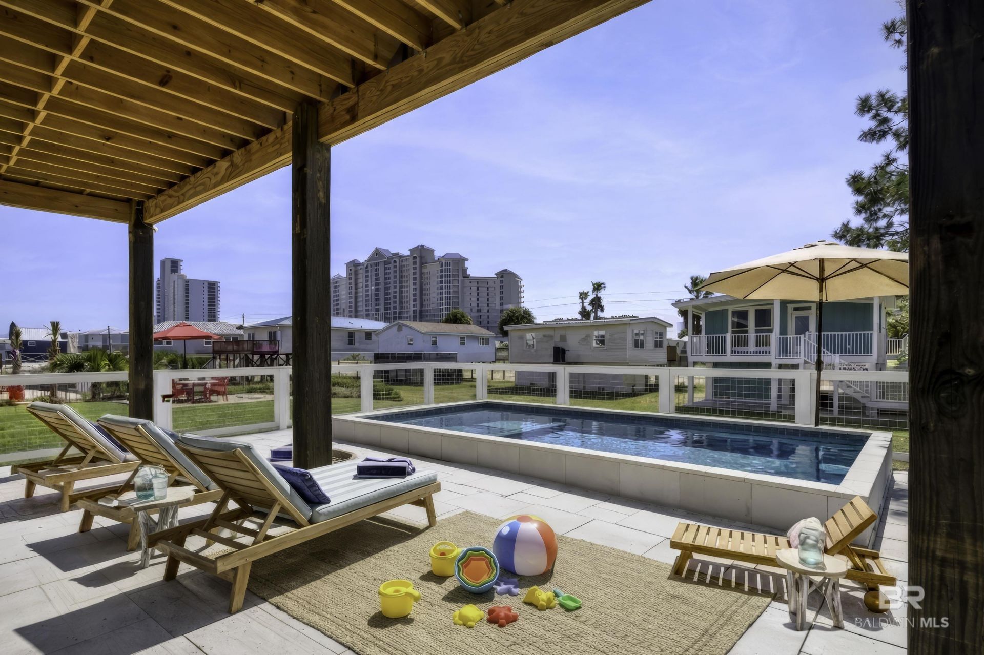 Nearly completed gold fortified new construction with no hoa and deeded beach access!!! This six-bedroom coastal home offers exceptional design, location, and versatility in the heart of East Beach. With the ability to sleep up to 20 guests and a heated gunite pool, the property is equally suited for personal enjoyment or as a high-performing short-term rental with projected gross income of approximately 160k. Coastal living takes center stage here, where beach days, sunset views, and effortless walkability come together in one of the most convenient locations along the coast. Just a short stroll to the sugar-white sand and emerald waters, this home places you right in the middle of it all?festival grounds, local favorites, shopping, The Hangout, and entertainment are all within easy walking distance. The home is thoughtfully designed to bring people together, with a spacious, open floor plan that flows naturally between the kitchen, living, and dining areas. Expansive covered porches capture the coastal breeze and offer inviting spaces to relax while taking in the energy of Gulf Shores. Inside, clean coastal finishes meet durability and function. Quartz countertops, custom cabinetry, and stainless steel appliances define the kitchen, while warm flooring and abundant natural light carry a relaxed, beach-forward feel throughout the home. With accommodations for up to 20 guests, including two bunk rooms, the layout is ideal for hosting large groups, family gatherings, or extended stays. Step outside to your private, resort-style heated gunite pool?perfect for unwinding after a day on the beach. Covered outdoor living areas add another layer of comfort, creating spaces designed for both entertaining and quiet moments. Whether you're searching for a personal beach escape, a place to gather, or an opportunity with strong rental potential, this property delivers on all fronts?location, lifestyle, and long-term value. Buyer to verify all information during due diligence.